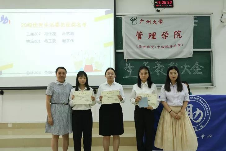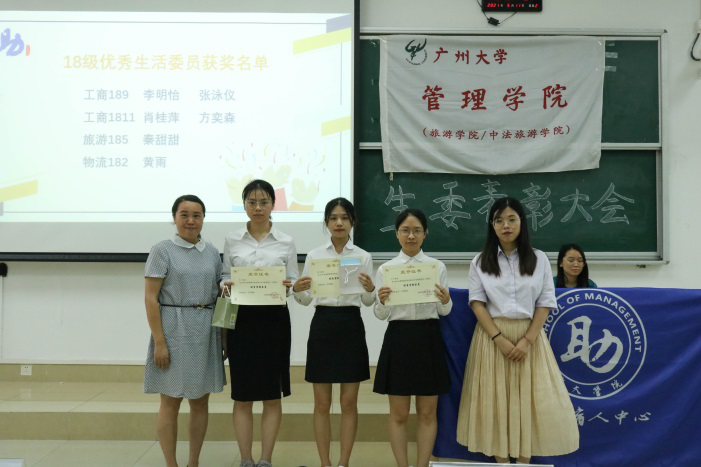 李佩雯老师与刘瑾老师为每位优秀生委颁发奖状与奖品,并与获奖同学合影留念。