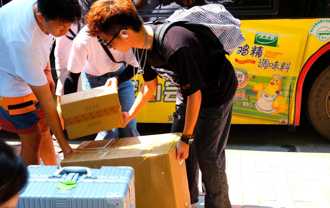 清晨,伴随着初阳的升起,管院“团友们”已早早将打包好的行李,并在待车区做好准备,有序地将我们旅程的行李装上我们的“旅行巴士”。