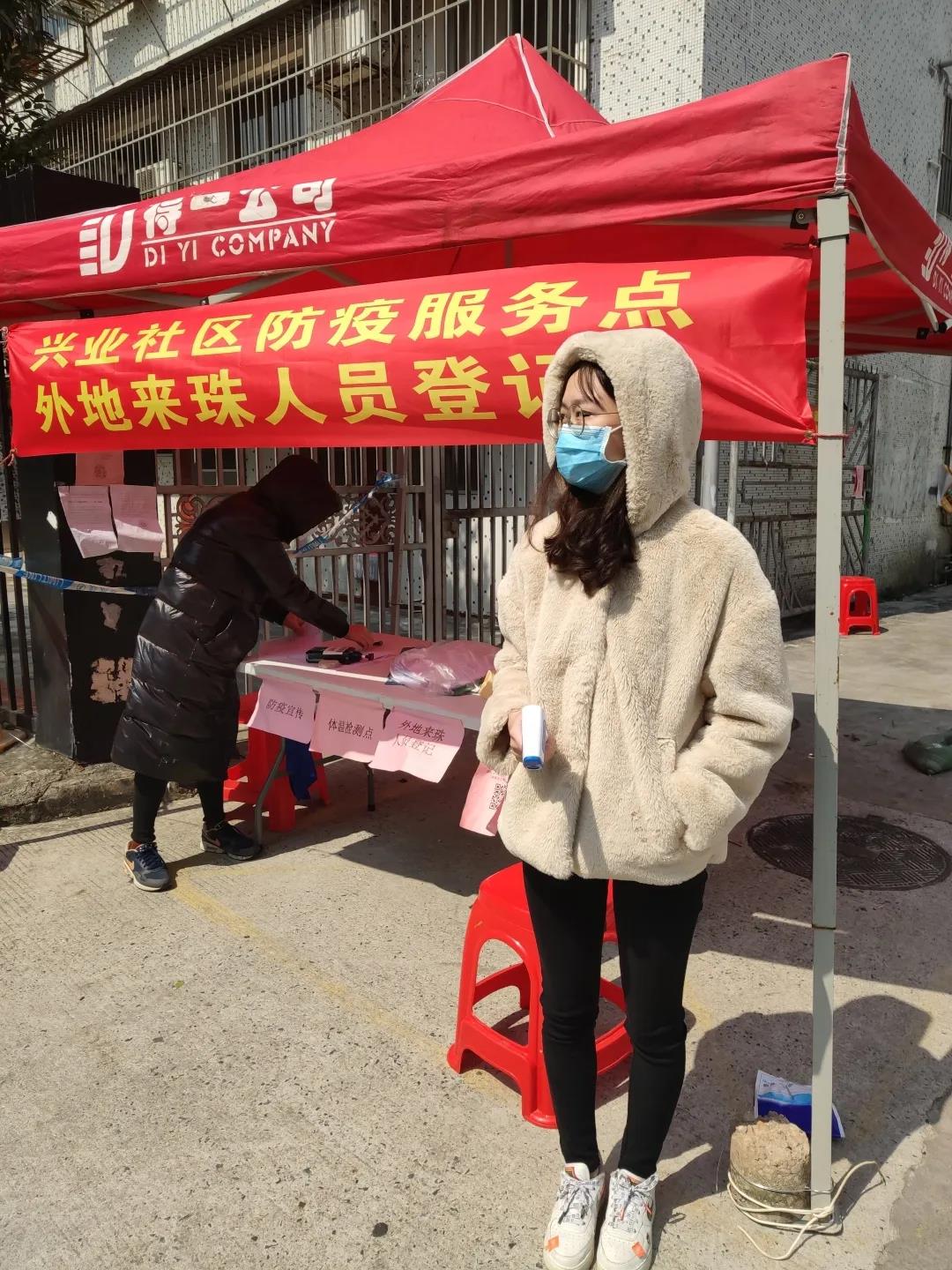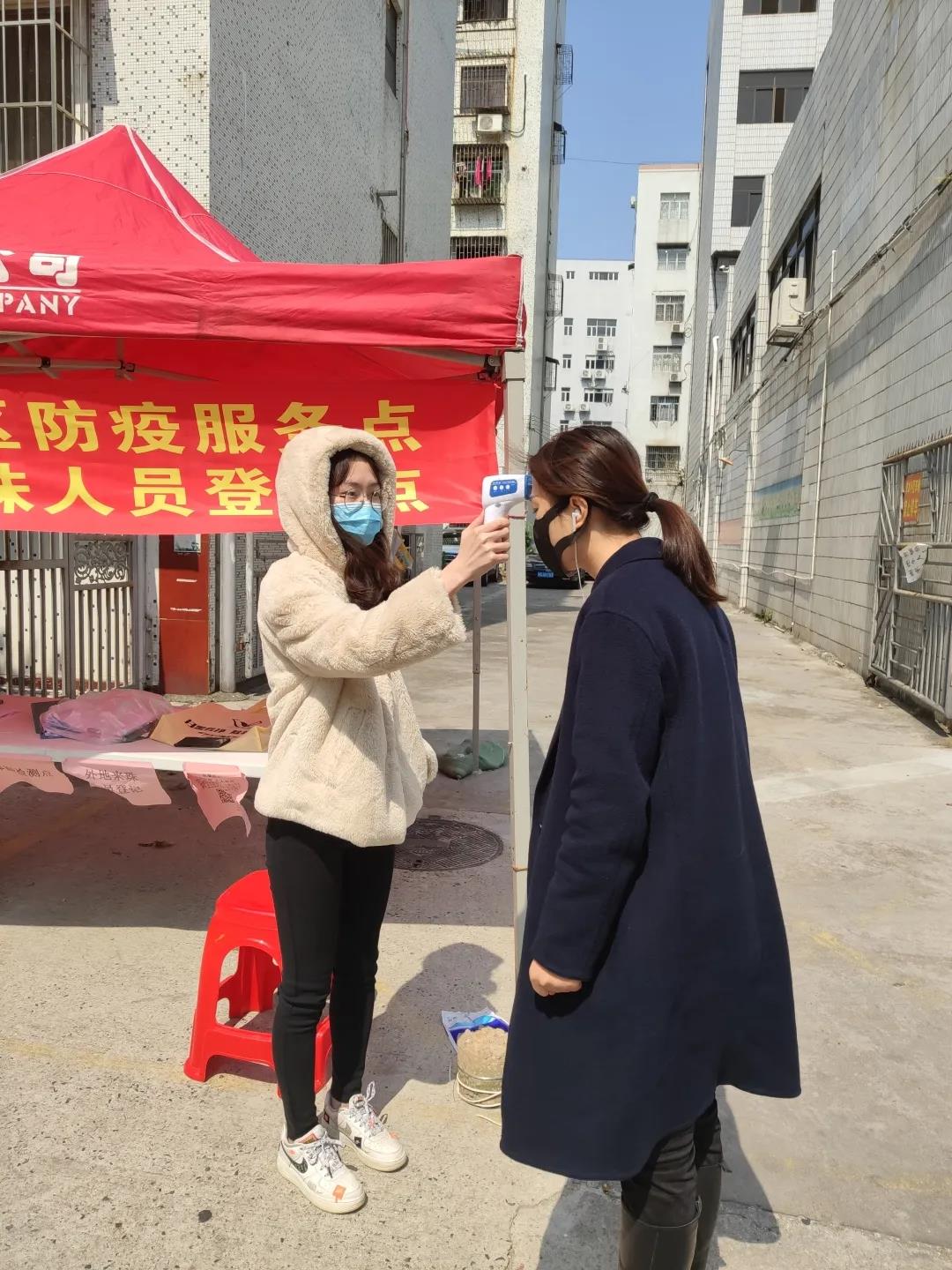 其中,房产161的李美龄同学在寒假回家后积极加入了所在社区的疫情防控志愿活动中。作为一名防控疫情志愿者,李美龄同学的工作主要是在防疫服务点对来访社区的人员和车辆进行登记,并为出入社区的人员测量体温。这项工作虽然简单,却为家乡的人们带来了安心,减少了健康隐患。