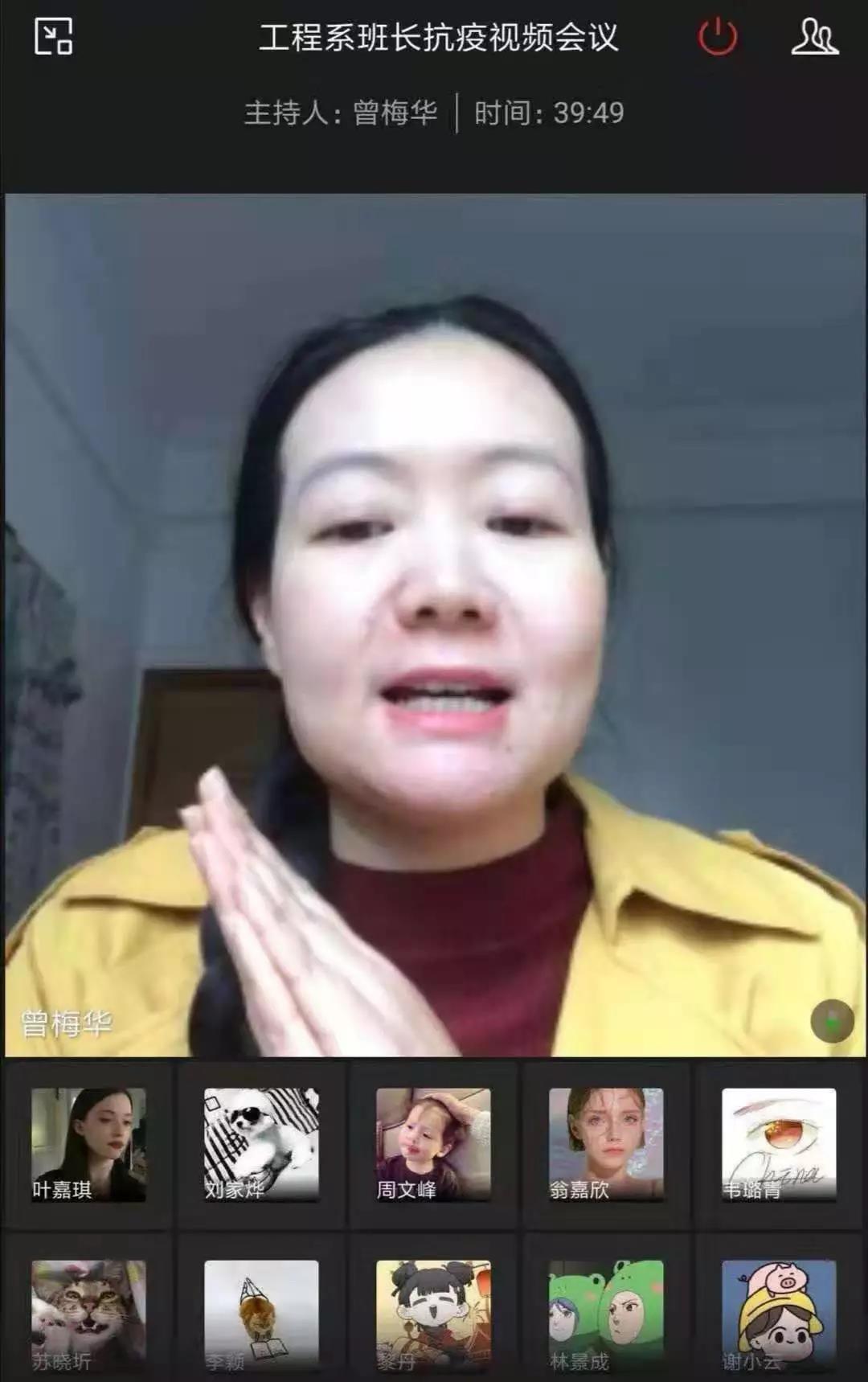 会议第一环节,老师们传达了学校和学院疫情防控工作精神,对当前各班防疫工作做了进一步安排。首先,会议指出当前疫情防控形势依然严峻,全体学生要统一思想,高度重视防疫工作,本着对生命敬畏、对自我负责、对社会负责的精神,全力做好班级每日健康状况报送,做到及时、准确、全覆盖。其次,会议强调为了同学们的健康安全,为了早日战胜疫情,不允许同学们提前返校,擅自返校同学会受到相应纪律处分。再次,会议要求同学之间加强对疫区同学的关心,号召班级同学主动联系家在湖北的同学,以各种形式送去温暖。最后,会议特别要求班团干部和党员同学要起到模范带头作用,主动做好疫情汇报、线上防疫宣传等。