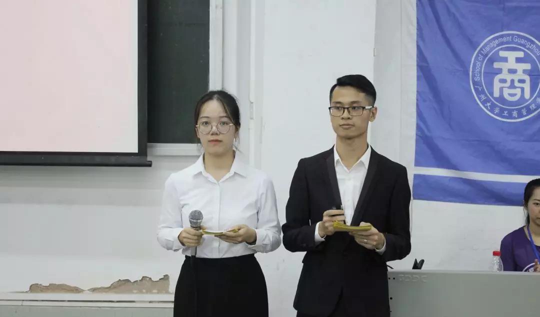 2019年5月24日晚上7:30,工商管理团委学生会于桂花岗校区11-阶三召开了2019年工商团学主席团换届公开演讲,出席本次会议的有学工办主任曾梅华老师、学工办副主任陈媛老师、团委书记周云老师、团委副书记邹婷老师、辅导员梁世健老师、助理辅导员梁荣清老师、劳科源老师、王浩老师、王科宏老师,此外参加这次公开演讲的嘉宾还有现任团委副书记黄雅芳师姐 、主席卓越师兄、副主席曾铃娜师姐、副主席李诗茗师姐、副主席柯凯丽师姐和现任人力资源部部长陈嘉仪师姐。