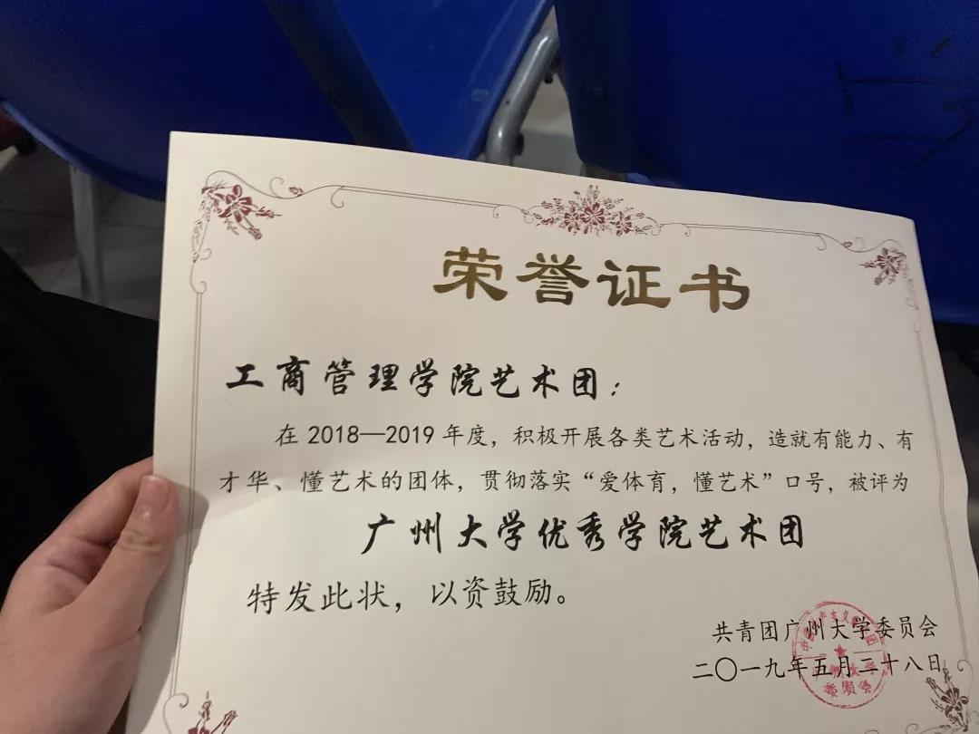 荣获2018-2019年度广州大学优秀学院艺术团以及广州大学学生艺术团优秀个人。