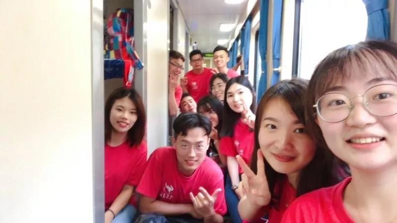 刚踏上火车的时候,由于广州站是始发站,空调还没开,火车内温度很高,就像桑拿房一样,然而这一点也不妨碍大家对奔赴清华的期待,老师和同学在车厢里相谈甚欢,言语里充斥满满的期待。