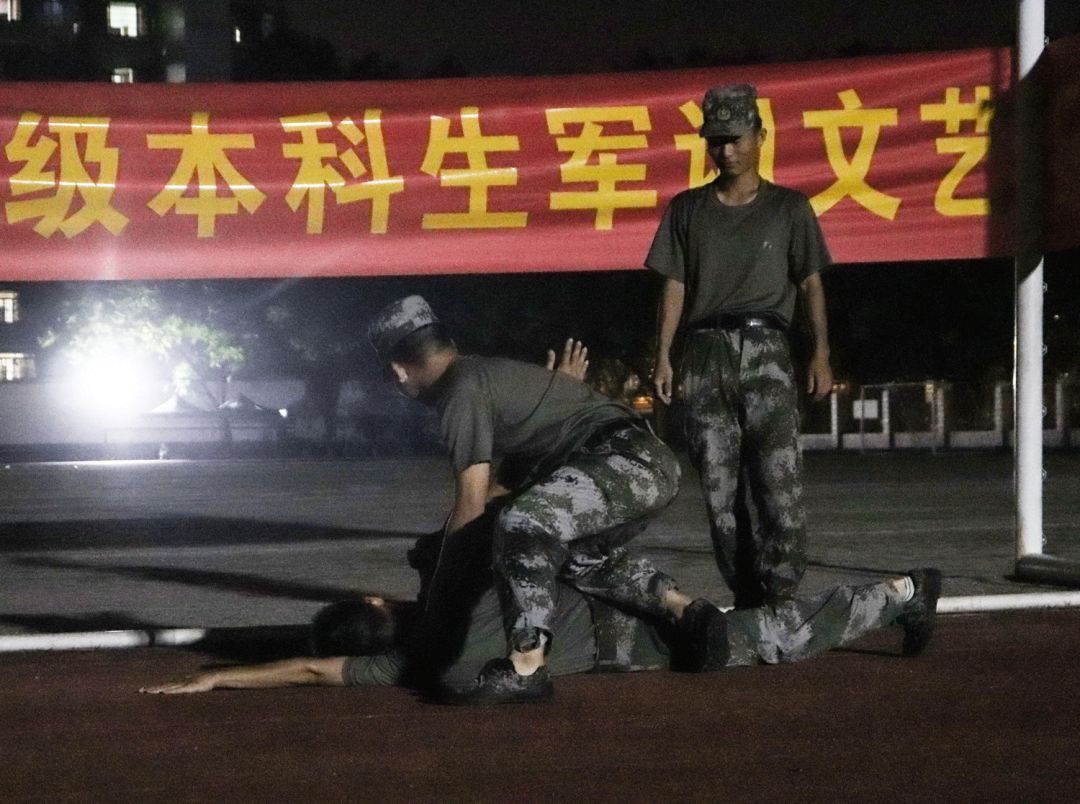 教官的表演更是让全场沸腾。一攻一守,一抓一推一倒,招招结实。教官们配合默契,给同学们展示了格斗作战的“真功夫”。飒爽英姿也引得同学们尖叫连连,场面热烈,把晚会推向高潮。