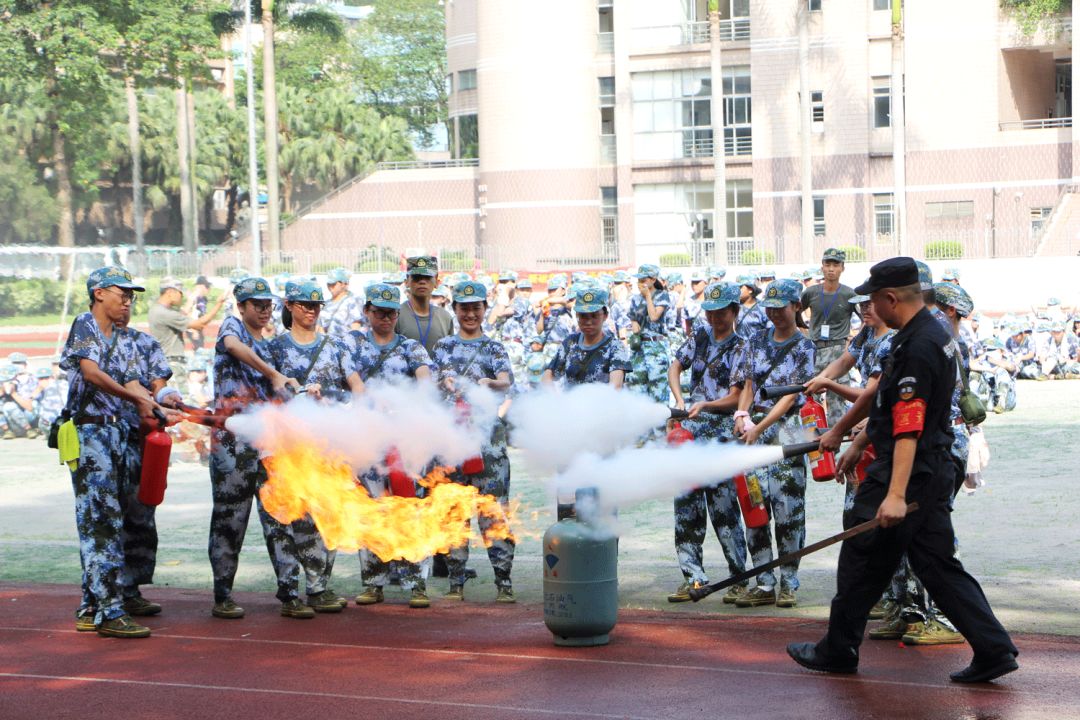 趁着军歌环节激起同学们的热情与专注,来自大学城消防队的消防员为同学们讲解并演示了如何使用干粉灭火器。期间还提醒同学们遇到火灾要沉着冷静,在火势较小,保证自己安全的前提下,可以使用灭火器进行灭火,若火势较大,则应迅速逃生。