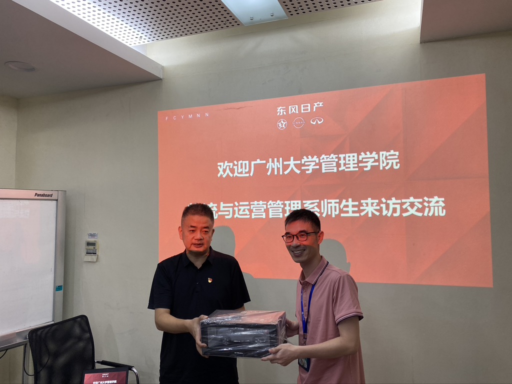 在与东风日产的会议交流上,黄祖庆教授、肖旦书记和邹毅峰副教授分别向企业和参观人员系统地介绍了物流与运营管理系、物流与运营管理系党支部和广州大学学生物流学会的基本情况。此外,曹兵兵副教授也讲述了校企合作活动的未来展望,希望校企双方加强合作,共同推进物流行业发展。