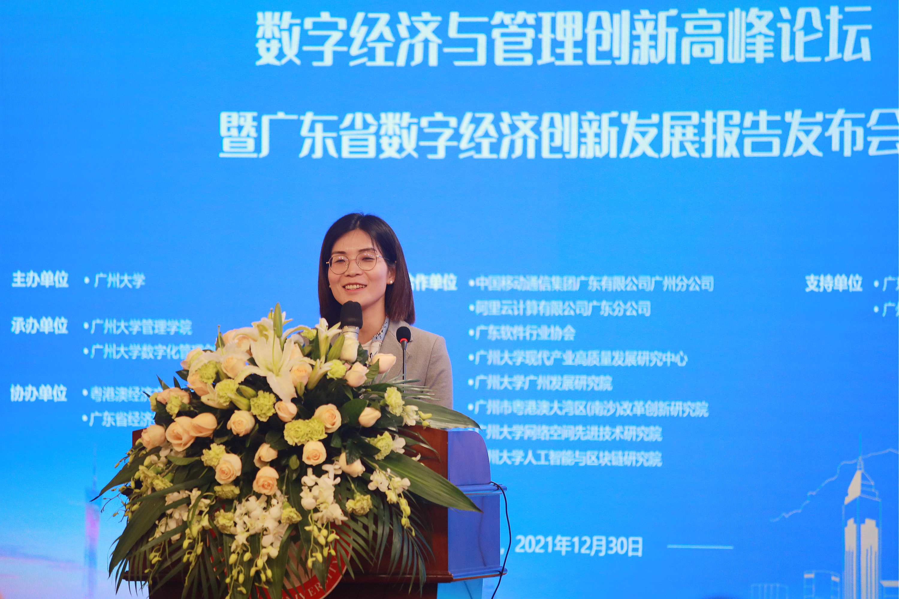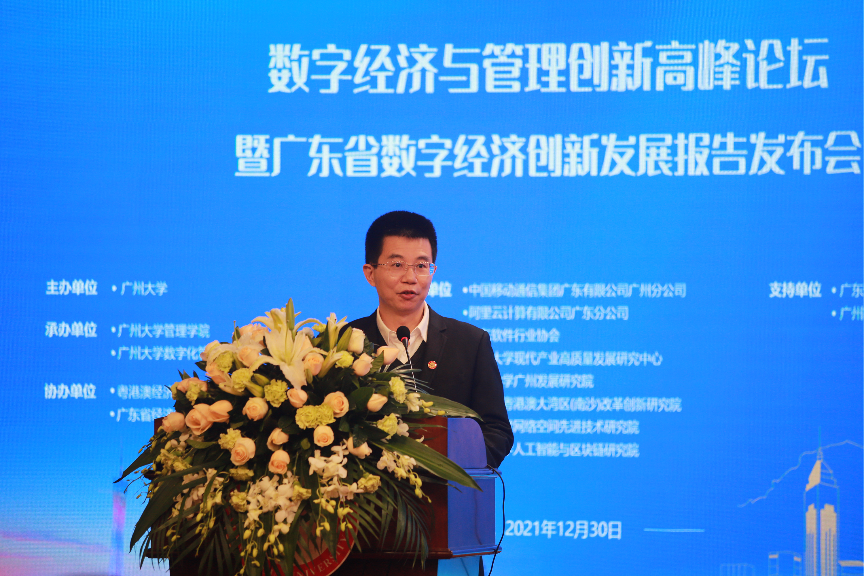 院长薛小龙教授代表学校数字经济创新发展研究团队发布《广东省数字经济创新发展报告》。薛小龙表示,广州大学数字经济创新发展研究团队(广州大学数字化管理创新研究院)汇聚了管理、统计、经济、数据科学、大数据技术等多学科研究力量,是学校新一轮高水平大学建设推进“数字经济与数字文化交叉创新平台”创建的中坚力量;团队持续跟踪广东省数字经济创新发展态势,围绕数字经济创新如何推动社会经济增长、如何促进产业商业模式变革、如何推动企业数字化转型与社会价值创造等重要科学问题开展深入研究。