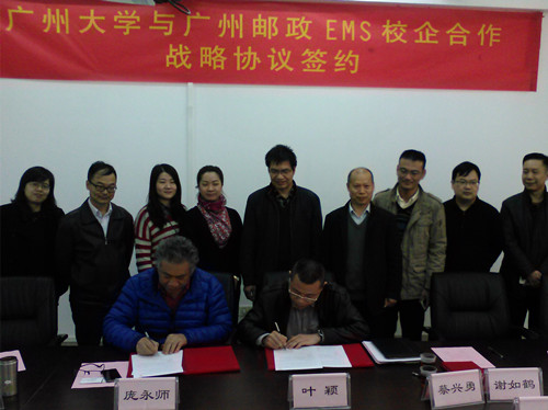 2015年12月28日下午,广州大学与中国邮政速递物流股份有限公司广州市分公司在广州大学行政东楼后座618室举行校企合作战略协议签约仪式,校服务经济社会工作处处长蔡兴勇、工商性爱网