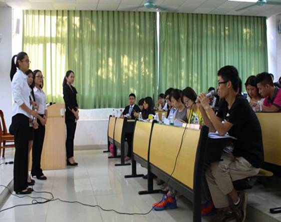 参赛班级按照预先选定的顺序开始进行班风展示,展示环节分为7分钟演讲和2分钟答辩,由本班三名选手组成一个参赛小组。各小组以极具特色的方式分别从班级基本情况、学风建设以及思想建设等方面进行了详尽的展示。在幻灯片展示中不但包含了学期的学业成绩分析的图表、个人和班级所获奖项,而且还有集体活动中班级成员团结一致、齐心协力的图片。另外,答辩选手从容不迫,慷慨激昂,引得观众阵阵掌声。所有选手演讲后,陈媛老师为本次活动做了精彩总结,她肯定了学习部为这次活动的努力付出和参赛班级的优秀表现,还针对了本次评比活动的一些问题提出了建议,在场学生认识到了优良学风评比活动的重要意义。