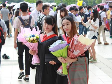 5月5日下午,性爱网 大四毕业班在我校大学城校区图书馆前进行毕业拍照留念。毕业生们身穿庄严的黑色学士服,手持鲜花,整齐地站上台阶,向天空抛起四方帽,寓意着梦想远航。不仅有庄严的学士服,古典的汉服、漂亮的晚礼服等各种漂亮的礼服也为现场增添一抹亮色。