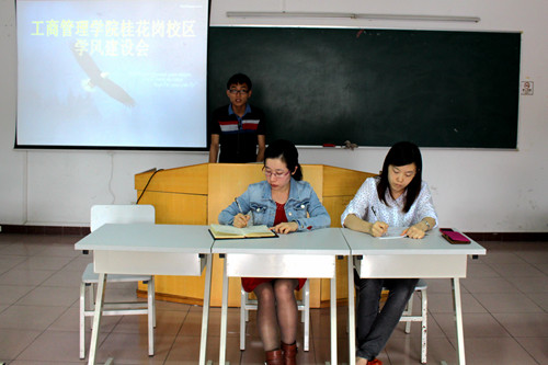 在桂花岗校区综合楼北601室召开以学风建设为主题的交流会。学工办副主任陈媛老师、辅导员邹婷老师、桂花岗党支部成员、院团委学生会学习部成员以及各班学习委员一同参加本次会议。