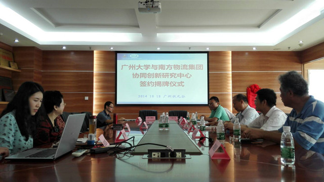 广州大学—南方物流集团协同创新中心成立后,将重点突出物流与电子商务的特色,针对南方物流集团公司的发展战略、运作管理和新技术应用,以及广州大学的人才培养和学科建设开展协同创新工作,该中心的成立将进一步促进校企产学研合作。挂牌仪式上,双方还就企业标准化建设达成了初步项目合作意向。