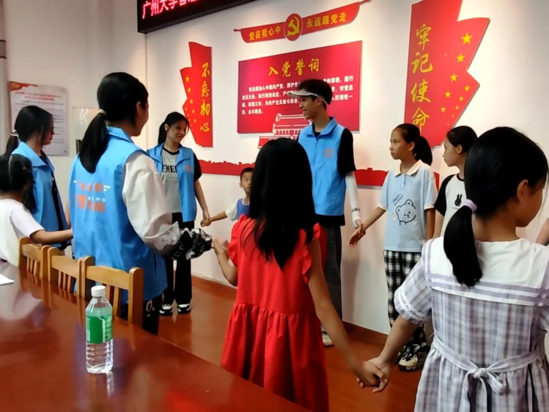 图10-11 实践团与鱼咀村青少年开展团体辅导与结对活动